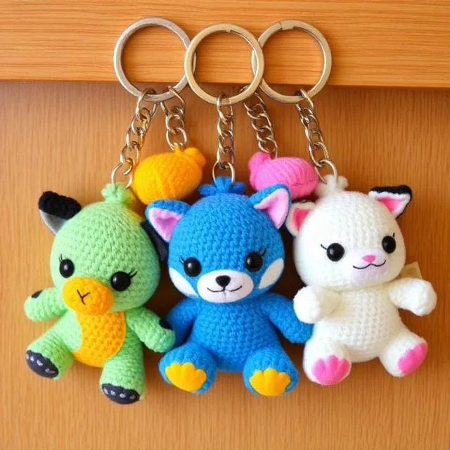 The plush toys that come in the form of keys are miniature. Children will be able to fasten them to school bags or keep them in their hands.